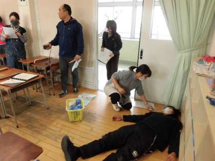 4/3 学校が再開し、給食が始まった時のためにアレルギー訓練を行いました。アレルギー症状は、いつ誰に起きるのかわかりません。そして、教職員の連携による迅速な対応が大事です。訓練終了後は、マニュアルを見直し、確実な情報集約や役割の確認をしました。健康で安全な学校生活が送れるよう準備しています。もちろん、窓を全開にして行いました。