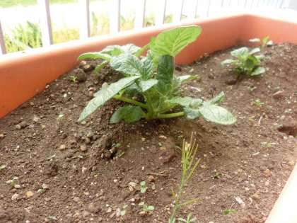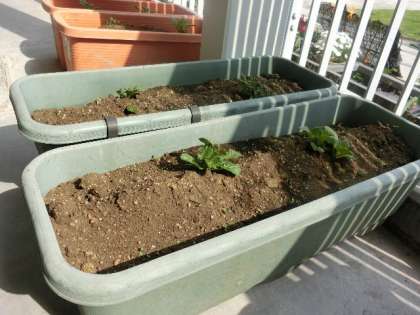 何が植えられているか分かりますか。6年生の理科の学習で使います。そう、ジャガイモですね。授業が始まるまで、大きく育てていきます。