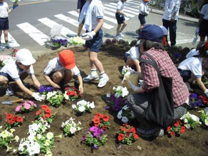 2年生は、晴天の中、世田谷線の松原駅と山下駅の間の線路脇に、松沢まちづくりセンターの協力のもと、花の苗を植えました。地域の方々に喜んでもらい、地域貢献するとともに、地域を大切にし、愛する気持ちも育てたいと考えています。