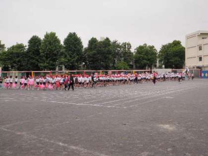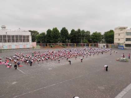 2度目の全校練習は、開会式の入場、開会式、準備運動、応援でした。いよいよ週末は、運動会当日です。子どもたちに疲れが見られますので、先生方は子どもたちの様子を確かめながらの練習です。ご家庭でも、しっかり食事をとらせ、睡眠をよくとるようご指導ください。