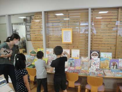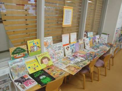 学校図書館司書の皆さんは、いつも子どもたちが本に親しめるように手立てを工夫してくださっています。この日は、1年生の授業で図書室を使うことになっていました。すると、司書さんは、普段は本棚にある絵本をテーブルの上に移動させ、表紙が見えるように並べていました。背表紙にあるタイトルを見ただけでは、自分が読みたい本を選びにくいのではないか…そう思って、司書さんが左の写真のように並べてくださいました。表紙の絵を見ていると、表紙に描かれた主人公が話しかけてくるようにも思えます。お話の内容を想像して興味が湧いてきます。1年生が、表紙を見ながら、楽しそうに自分が読みたい本を選んでいました。