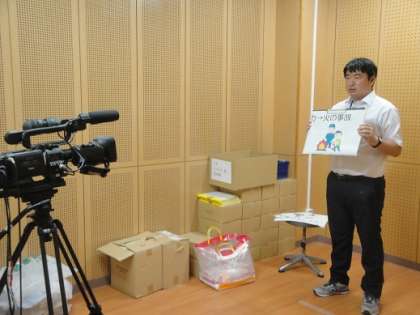児童代表の言葉は、3年生の3名。テレビカメラの前で、堂々とスピーチをしました。1学期に係活動にがんばったこと、友達と一緒に運動したことで仲が深まったこと、「2階で過ごす子どもたち(1〜3年生)のリーダーとしてがんばったこと、2学期の行事や学習についての目標…。生き生きとした力強い言葉で語られていました。