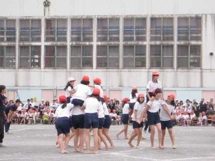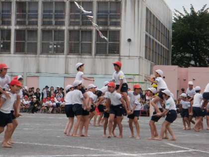 高学年の団体競技は、5・6年合同による騎馬戦でした。騎馬を組んでの堂々の入場でしたが、組み合って戦う騎馬が少なく、組み合う場面の写真を撮るのに苦労しました。