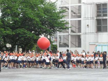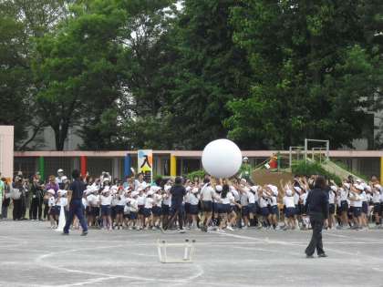 運動会最後の紅白決戦は「大玉送り」でした。ボールを運ぶ6年生のリーダーの役目がとても重要になります。コーナーを送るとき、大玉が落ちないようにフォローする必要があるからです。みんなボールに触りたくて必死でした。
