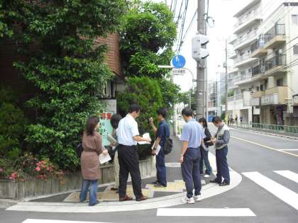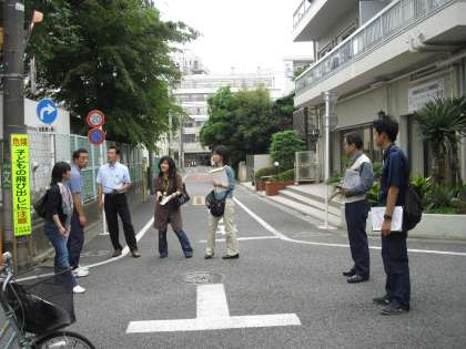 学区域の安全点検を、北沢警察署・世田谷区土木管理事務所・PTA校外委員の方、副校長、生活指導主任の小林太主幹教諭、教務主任の大門主幹教諭の7名で行いました。交通安全や不審者から子どもたちの安全を守る視点にたち、危険個所はないかどうか学区域を歩いて、毎年確認しています。駐車車両のために見通しの悪い通りやうっそうとしている木々のための視界がよくない箇所等の点検を行いました。馬を置くとよい道路の確認も行いました。北沢警察署の方に、点検をして、個人の家の木の伐採を警察から指導してもらうよう要請したり、駐車車両の取り締まりをお願いしたりしました。
