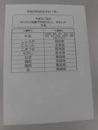 9月24日(木)の食材産地について