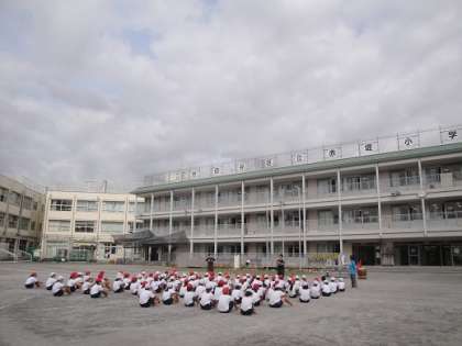 6年生が校庭整備をしている間、他の学年は、朝自習の時間でした。そこに、校長先生から放送が入りました。