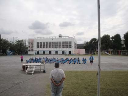 学校では、明日の運動会に向けて、最後の準備に取りかかっています。