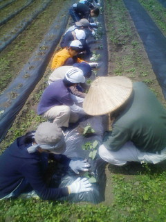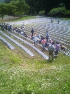 13:00からは、勤労体験学習でした。さつまいもの苗を一人5つずつ植えました。次は子どもたちが楽しみにしている飯盒炊さんです。