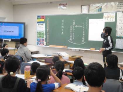 赤小にとって初めてのイベント、「にこわく『室内遠足』」の日が近付いてきました。今、6年生は、「チャレンジポイント」の内容について話し合っています。どのような内容を取り入れるかは、おおよそ決まっています。次は、その内容を、どのようにして分かりやすく説明するかについて考えています。担任から、より分かりやすく説明する方法や掲示物をつくる際のポイントなどについてアドバイスを受けました。その後、グループごとに説明の内容や方法とうを工夫しました。