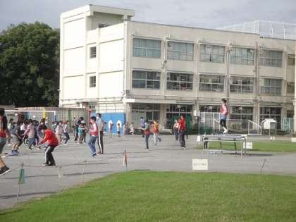 今年度は、「密」を避けるため、1・3・6年生と、2・4・5年生に分かれて実施しています。朝の時間を使った活動では、6年生が1年生と3年生の間に並んでモデルになります。同様に、5年生が2年生と4年生の間に並んでモデルになります。また、休み時間の校庭での検定は、5年生が2・4年生の検定の「検定員」になり、6年生が1・3年生の「検定員」になります。検定員の仕事は、下の学年を励ましたりアドバイスしたりしながら、検定の合格判定を行うことです。本校のリーダーである5・6年生と、1年生から4年生までの子どもたちの交流の場の一つとして実施しています。