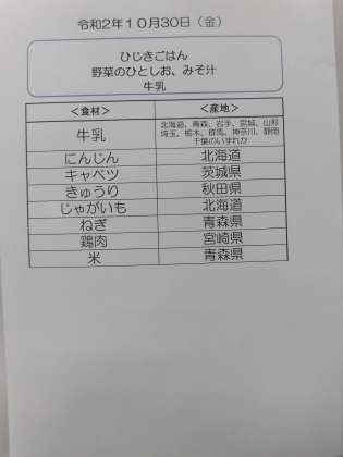 10月30日(金)の食材産地について