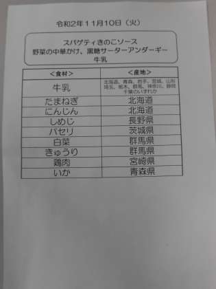 11月10日(火)の食材産地について