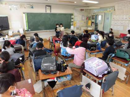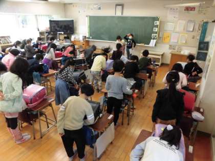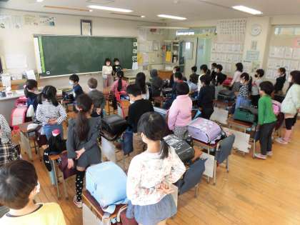 先生からのお話が終わったら、帰りのあいさつです。日直が「明日も元気に登校しましょう。さようなら。」といった後、全員で「さようなら」と言い、礼をします。