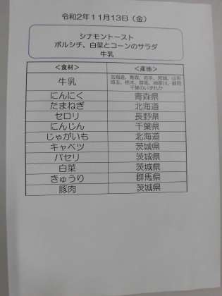 11月13日(金)の食材産地について