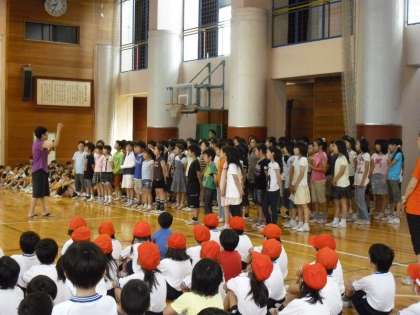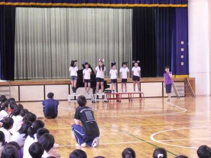 始業前に音楽朝会を行い、美しい歌声が体育館いっぱいに響きわたりました。