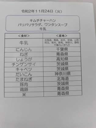 11月24日(火)の食材産地について