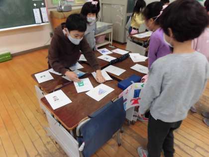 店員役、お客さん役に分かれて、会話をしながら販売しました。「いらっしゃいませ。」「これください。」「ありがとうございました。」など、子どもたちは楽しそうに取り組んでいました。