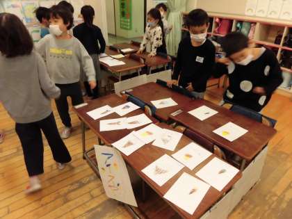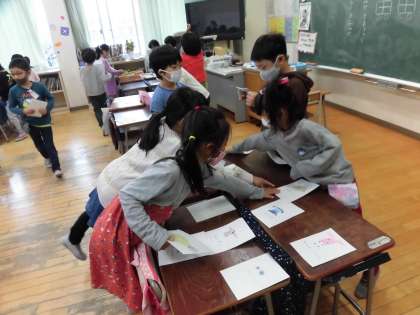 この単元では、「一つ一つの名前」と「まとめて付けた名前」の違いを学習しました。そのうえで、品物(一つ一つの名前)を絵で描き、お店(まとめて付けた名前)で販売する「お店屋さんごっこ」を行いました。