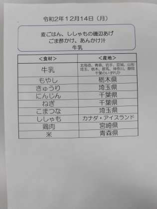 12月14日(月)の食材産地について