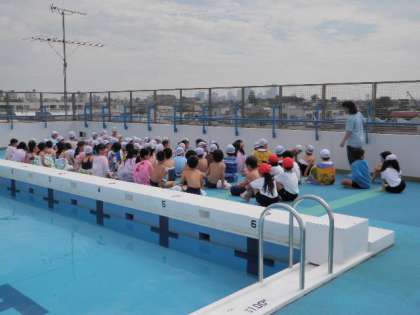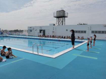2年生もプール開きを行いました。気温35度、水温31度の好条件でした。プール開きの前にタオルを掛ける場所を確認し、プール開きでは、各組代表児童が今年の目標を発表しました。