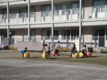 12月から、休み時間にバランスボールが使えるようになりました。子どもたちは、ボールの上に座ったり、横になったりしながら、体のバランスをとって楽しんだり、そのバランスを意図的に崩して楽しんだりしています。