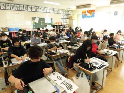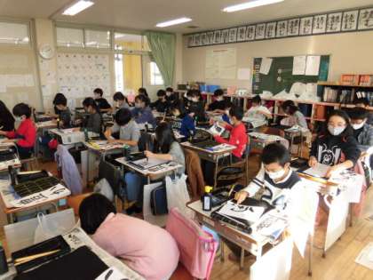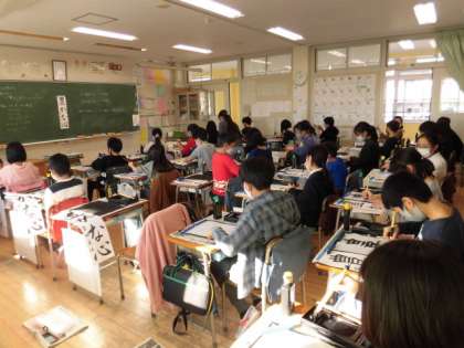 子どもたちは、手本をよく見て集中して一画ずつ丁寧に書きました。