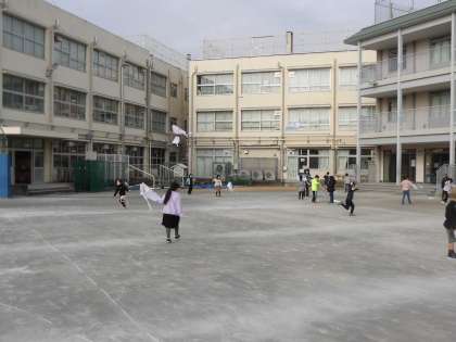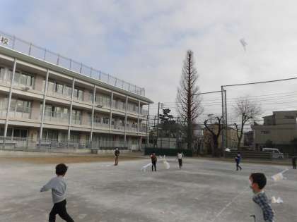 さて、今週の日本語「昔から伝わる遊びを楽しもう」の学習では、凧揚げをしました。程良く風が吹く好条件の中、校庭を思いっきり走りながら、凧に勢いをつけて飛ばしていました。少しずつ糸を伸ばしていきながら、空高く上がる凧を見て、「すごい。」「高く飛んだよ。」など、嬉しそうに活動する姿が印象的でした。