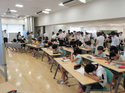 世田谷区小学校教育研究会(世小研)の7月合研で、中嶋先生が算数部で提案授業を行いました。算数部は一年間「筋道を立てて考え、表現できる子どもを育てる算数指導」を研究主題に研究を進めます。今日は「ならび方と組み合わせ方」の授業を行いました。