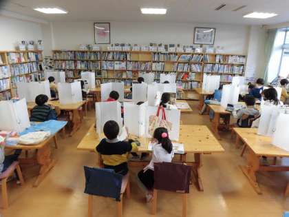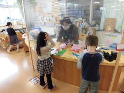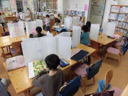 本年度は感染症予防のため、パーテーションを付けたり、返却された本を消毒する期間があってすぐには借りられないなど、制約はありますが、その中でも子どもたちが本のすばらしい世界を知り、楽しみながら語彙を増やしていければと考えております。