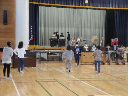 5年生に教える6年生の姿からは、赤小パレードの引き継ぎを、「卒業に向けての大切な一歩であり、これをしっかりと引き継ぐことが、卒業していく自分たちの責任である。」と考えていることが伝わってきます。