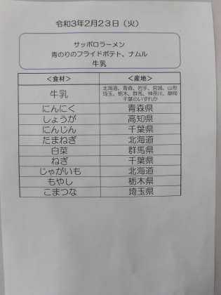 2月24日(水)の食材産地について