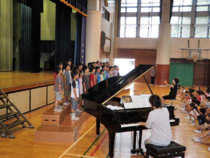 終業式後、赤堤小学校合唱団32名が歌声を披露してくれました。朝から澄んだ歌声を聞くと、とても清々しい気分になります。8月1日のNHKコンクールを目指し、さらに練習を積み重ねてほしいと思います。
