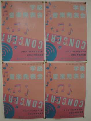 「学級音楽発表会」は、もうすぐそこに迫っています。各学級の練習も、最終調整の段階に入ってきました。保護者の皆様には、先日ご案内を差し上げた通り実施する予定です。校内にもポスターが掲示され、発表会直前の雰囲気をもり立てています。