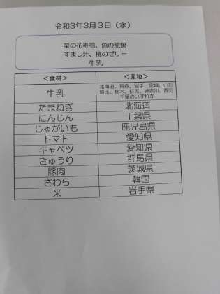 3月3日(水)の食材産地について