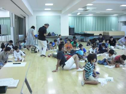 紙ヒコウキ日本チャンピオンの大八木 元氏を講師にお招きして、絵をかいたり、色を塗ったりして、オリジナルの紙ヒコウキを作りました。お父様方の参加も多く、作り方を教わりながら、熱心に作り上げました。出来上がった紙ヒコウキを、早速、校庭で飛ばしました。空高く、また、遠くへ跳ぶ紙ヒコウキに、歓声があがりました。赤堤生涯学習センター事務局長の小林 雅一様、体育指導員の高橋 重幸様はじめお手伝いの保護者の皆様ご協力くださいましてありがとうございました。
