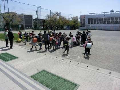 1年生は、しばらく方向別で集団下校をしています。だんだん、集まり方や下校の仕方など上手になってきました。また、子どもたちが安全に下校できるよう、保護者の方が迎えに来てくださったり、地域の方々が見守りに来ていただいています。たいへん感謝しています。