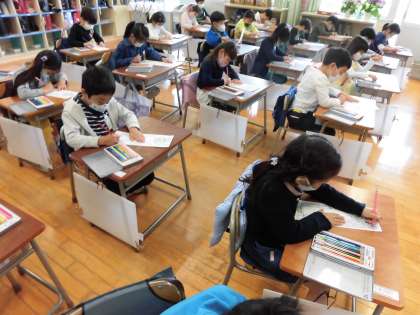 1年生国語の学習です。初めての学校生活で、どの授業にも意欲的に取り組んでいます。