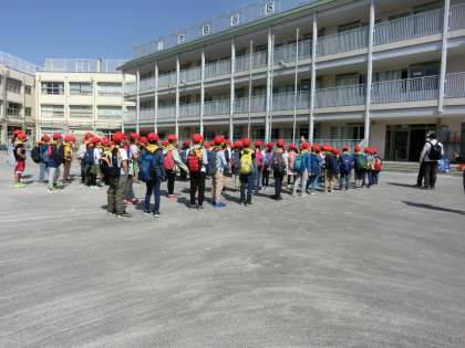 3年生が遠足に出発しました。コロナ禍でもできる活動を準備し、感染防止の対応をしながら実施しています。お天気にも恵まれ、子どもたちは、笑顔で出発しました。