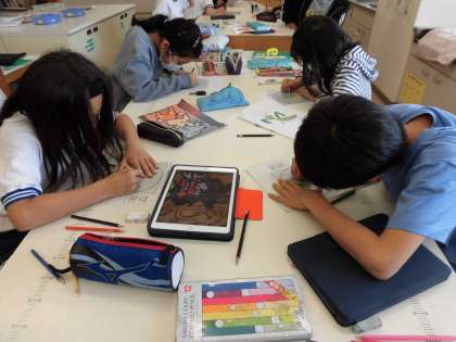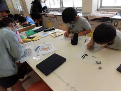 自分が刺繍をしたいデザインを考えて集中して丁寧にマスに色をぬっていました。