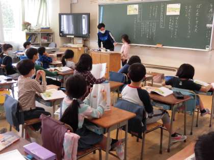 授業では、児童が前に出てきて、登場人物になりきって役割演技をし、なぜその言葉を言ったのか、理由を発表し合いました。「けがをしたら大変だよ。」「ダメって言われているから、きっと危ないんだよ。」などの意見から、自らよいと思うことを進んで行おうとする気持ちが見られました。