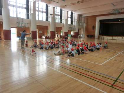 校長先生は「小学校で初めのてプールが始まります。安全に気を付けて楽しいプールの時間にしましょう。」と話しをしてくださいました。