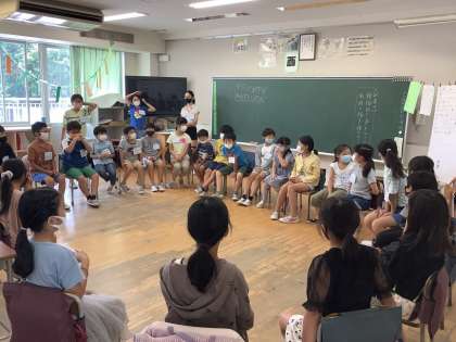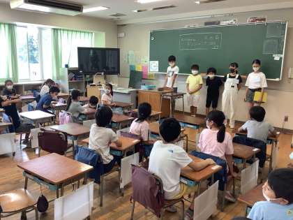 6年生がリーダーとして、1〜5年生までみんなで楽しめる活動を提案し、活動しています。今回のめあては、「積極的に自分から声をかけて、名前と顔を覚えよう!」です。めあてを達成するため工夫された活動をしていました。