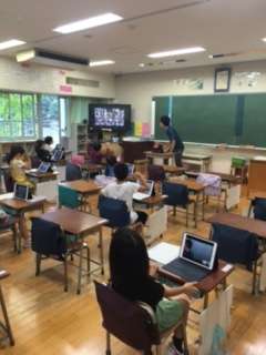 朝の教室の様子です。初めての取り組みなので、子供たちに無理のないように、進め方を確かめながら実施していきます。あいにくの雨模様となりましたが、気温が下がったので窓を大きく開けて換気をしても快適です。