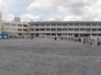 毎月行う避難訓練を行いました。子どもたちはとても落ち着いて「おかしも」の約束を守って行動できました。