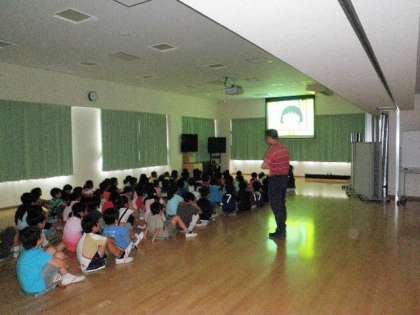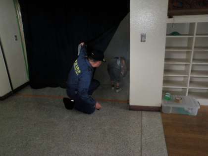 4校時は各学年に分かれて、防災教室を行いました。1・2年生は「煙中避難訓練」、3年生は「防災VTR視聴」でした。
