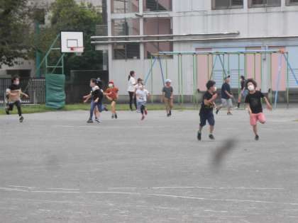 どの学年の子どもたちも、休み時間になると、声を掛け合って、校庭で鬼ごっこをしたりバランスボールで遊んだりするなど、元気に過ごしました。