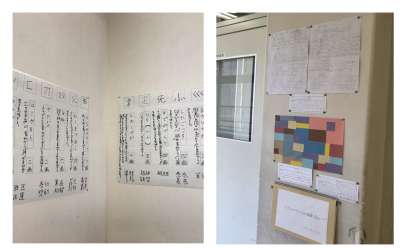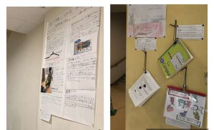 力作がたくさん集まり、いつもの掲示板と長机だけでは場所が足りないほどでした。柱や階段の途中にも掲示させていただきました。こちらもご覧ください。