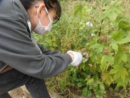 6年家庭科 オーガニックコットン収穫1回目