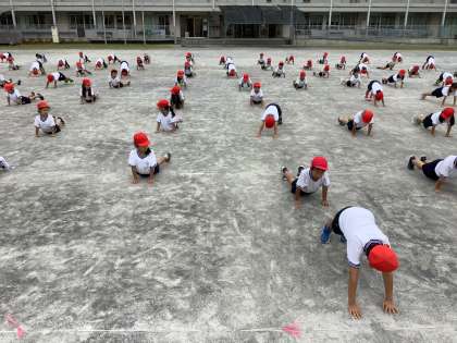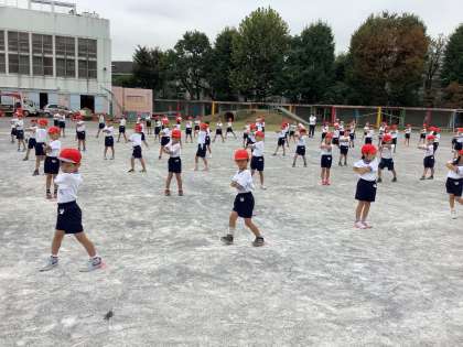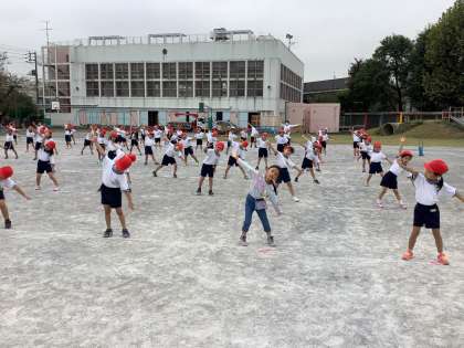 1年生は、「ピクニック」と「やってみよう!」の音楽に合わせて、ダンスを踊ります。練習の様子を少しだけお見せします。